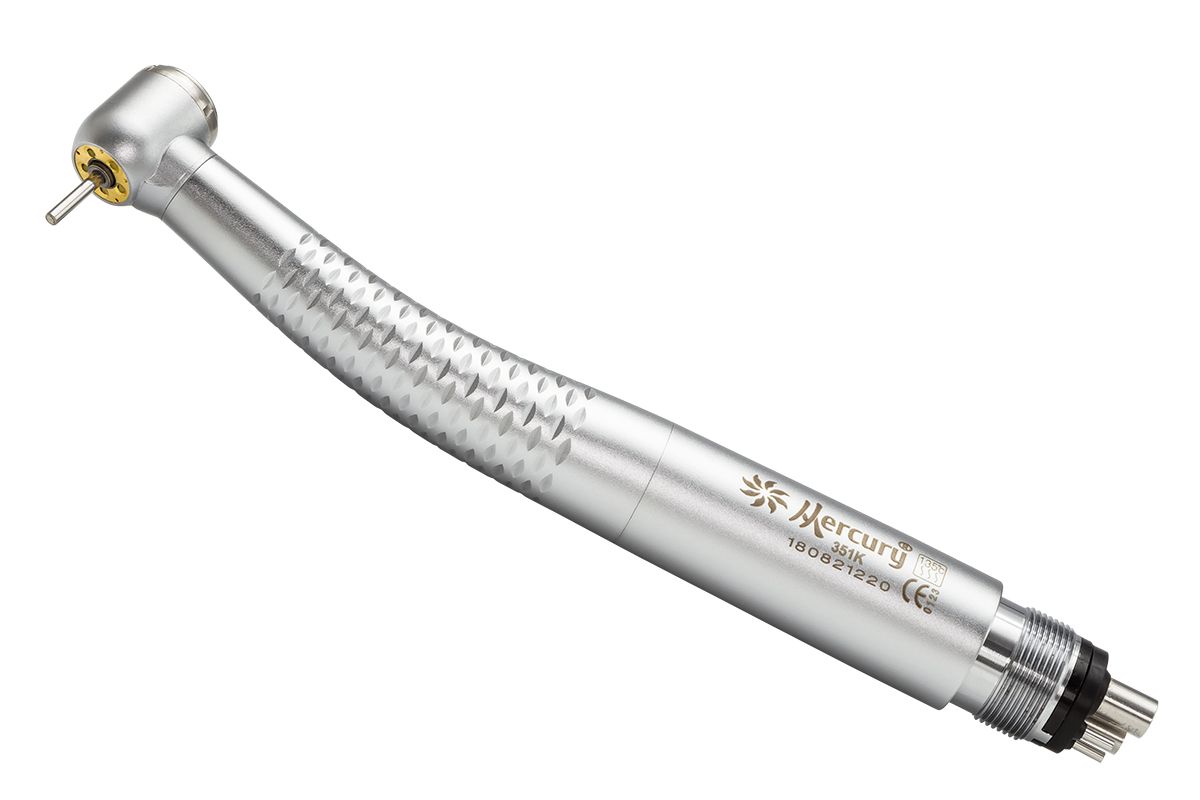 Наконечник Mercury 351K оснащен генератором света очень высокого качества. Пятидиодный светильник обладает ярким, но мягким светом, благодаря чему хорошо освещает рабочую зону, и, при этом, не слепит глаз врачу и пациенту. Более того, такой светильник расходует мало энергии.