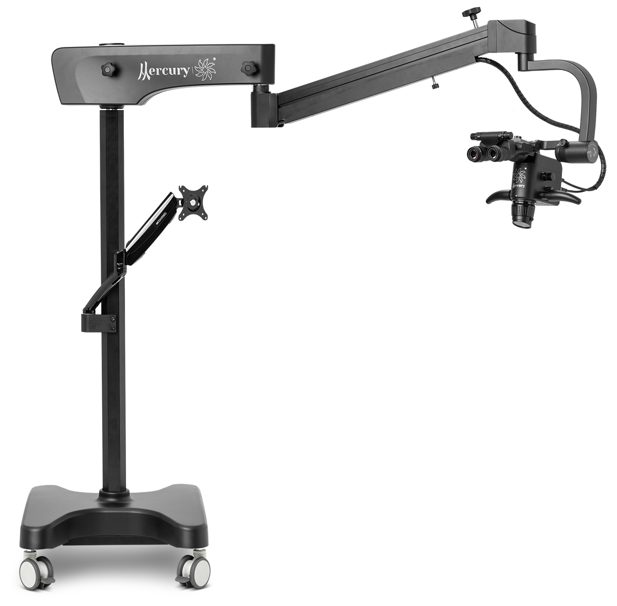 - Микроскоп можно плавно перемещать и фиксировать в любом положении. Длина плеча — 1860 мм.