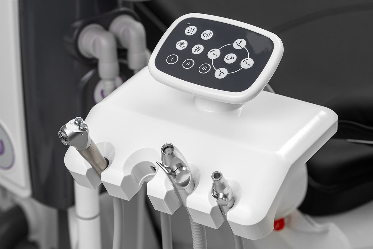 - Эксклюзивный дизайн модуля врача с дополнительным столом для инструментов, встраиваемый электрический мотор со светом и скейлер со светом.