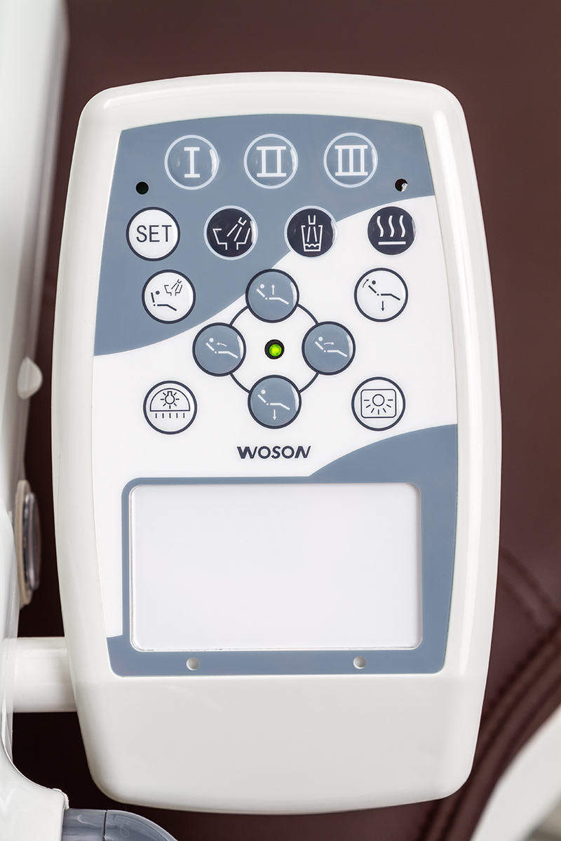 - Мембранная панель управления — интуитивно понятная, позволяет управлять креслом, плевательницей и дополнительными функциями.