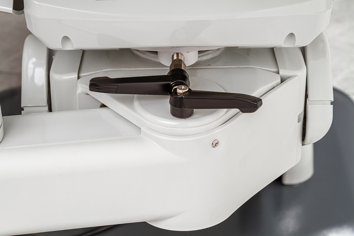 - Чугунное основание и особое крепление блока врача обеспечивают исключительную устойчивость. Установка не раскачивается даже при активных манипуляциях.