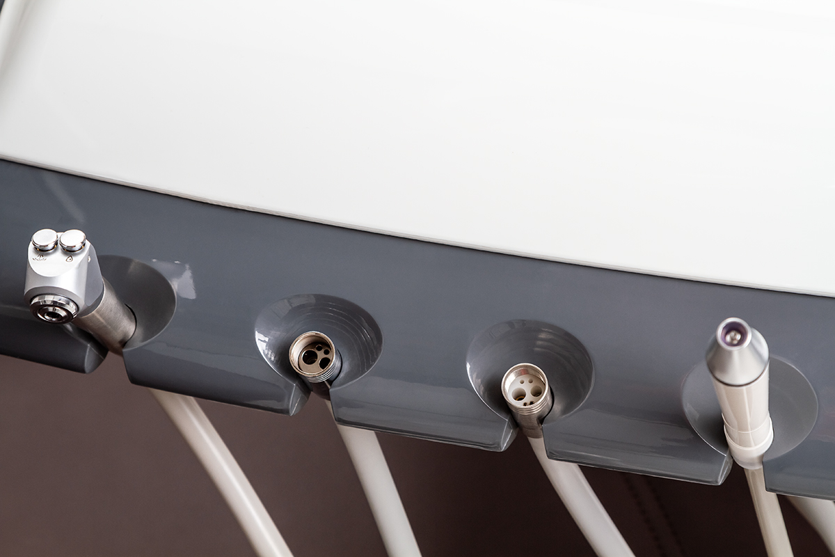 - блок врача на 5 инструментов (пистолет вода-воздух, 1 шланг М4, 1 шланг М6, свободное место под скейлер и мотор);