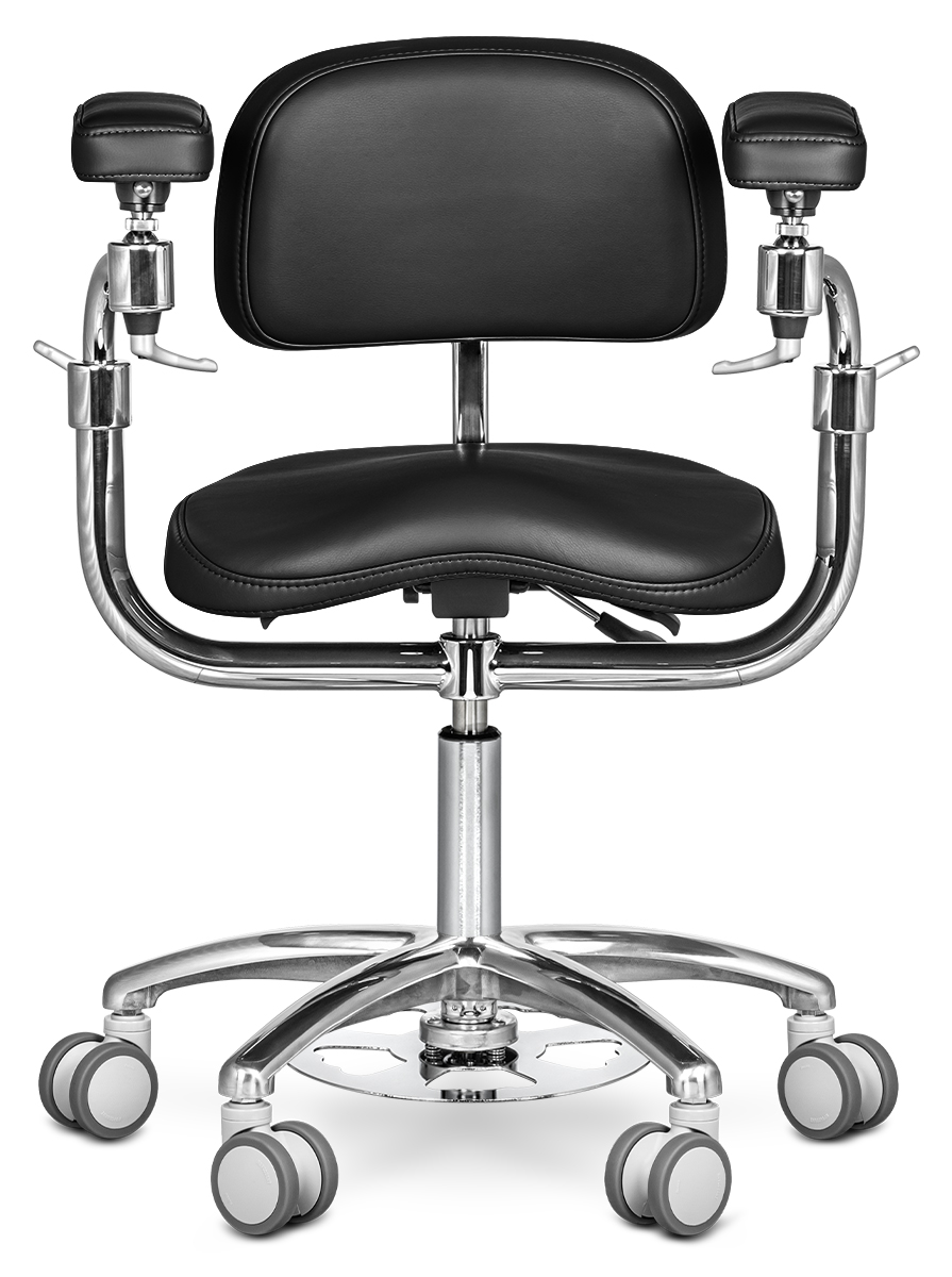 Механизм локтевого упора используется во всей линейке Elite позволяет комфортно настроить положение для человека с любой комплекцией, что увеличивает его универсальность, так как вы можете вести общую практику и работать за микроскопом.