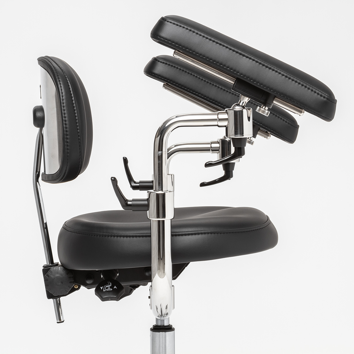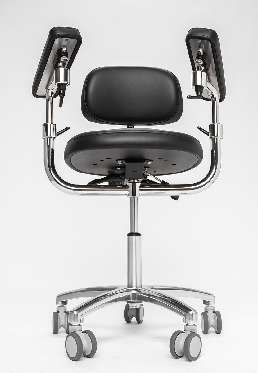 Одна из самых важный частей стула микроскописта — подлокотники. Они помогают долгое время держать руки в одном положении без появления боли. Подлокотники стула Mercury ELITE оснащены функцией регулировки высоты и наклона. Вы можете настраивать их так, как вам будет удобно для более комфортной и продолжительной работы.
