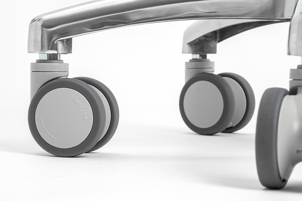 Колесики кресла — важное достоинство стула Mercury ELITE. Они позволяют быстро и с комфортом передвигаться на нем по кабинету, а также перекатывать стул между кабинетами. Антибактериальное покрытие исключит вероятность переноса инфекции в стерильное помещение, а дополнительный прорезиненный слой поможет избежать скрипа и других нежелательных звуков.