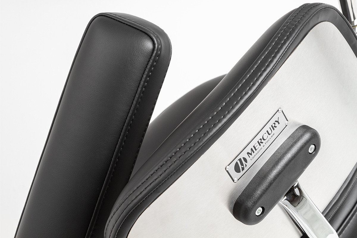 Не менее важной частью стула является обивка. На Mercury ELITE она соответствует высоким стандартам качества. Материал из медицинской фиброкожи высокого класса позволяет дезинфицировать поверхность даже агрессивными средствами без боязни повреждения структуры. Также обивка не скользит и имеет высокую степень истирания по Шорсу.
